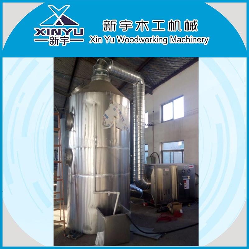工作原理:帶有粉塵,有害廢氣、煙霧的氣體從吸塵吸氣管道進入旋風填料噴啉塔,經過不銹鋼旋風板兩次改變風向使氣體在塔內來回旋轉,通過兩種不同的填料層,再經過兩次的噴淋,使粉塵和有害氣體,及煙霧的有效的分解稀釋,再通過除霧層除去噴淋所帶來的水霧,利用風機從排風管道排除,根據有害氣體和煙霧的濃度:加上等離子光氧等電子設備配套使用,這樣處理效果會更佳。